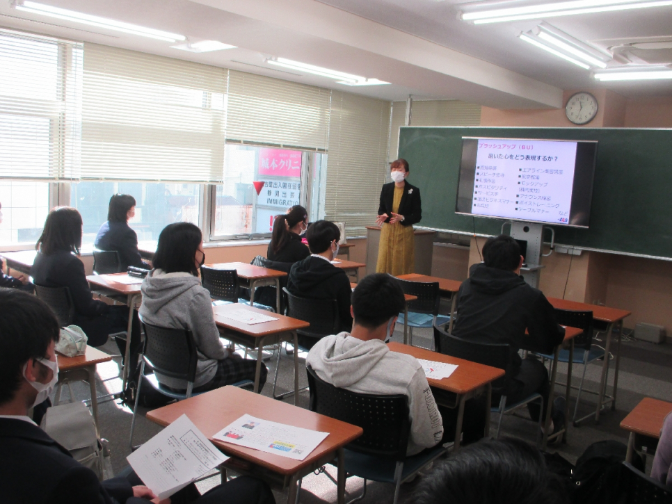 一番初めの挨拶では、挨拶の声が小さかった静岡キャンパスの生徒たちも、三橋さんの熱意ある講義に動かされ、少しずつ声がでるように。