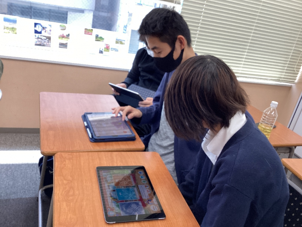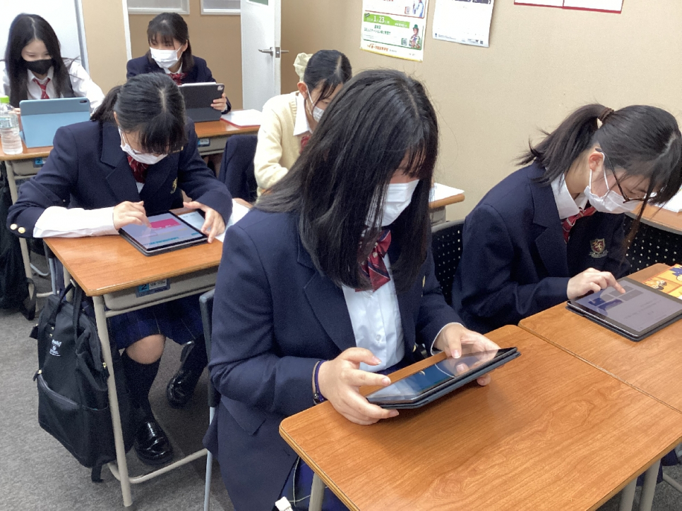 高校1年生、タブレットを初めて持つ生徒も多いですが、だんだんとタブレット操作にも慣れてきました!