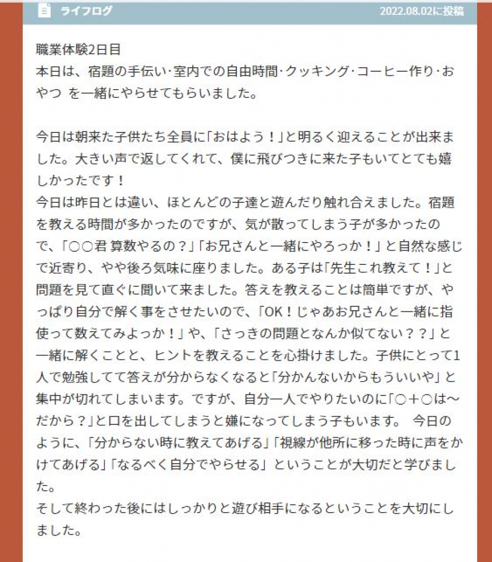 生徒の感想は、画像をご覧くださいね。その感想は、オンライン上で投稿するため、夏休み中も職員(フェロー)はその投稿記事をリアルタイムで確認し、エールを送ることができます!