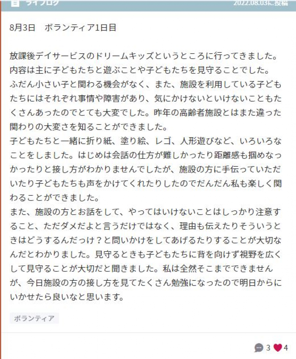 この夏休み期間、ボランティア活動に積極的に取り組んでくれています。
