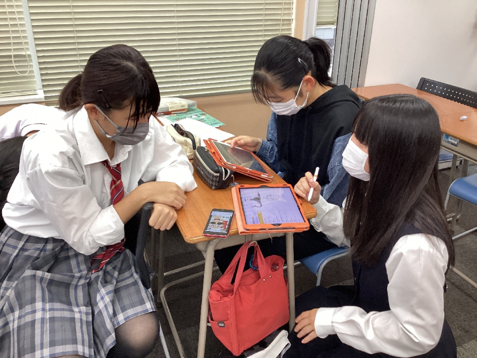 ibispaint(アイビスペイント)というアプリケーションでお絵かきをしている生徒、