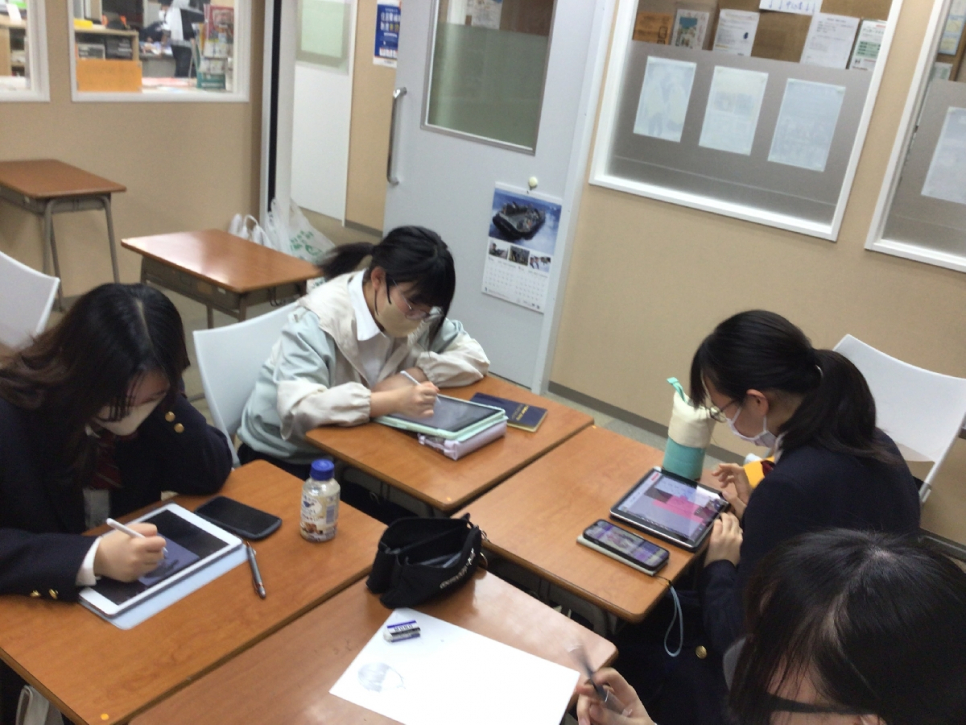 中等部生から高校2年生の生徒たちが集まり、各々好きなイラストを描きました!