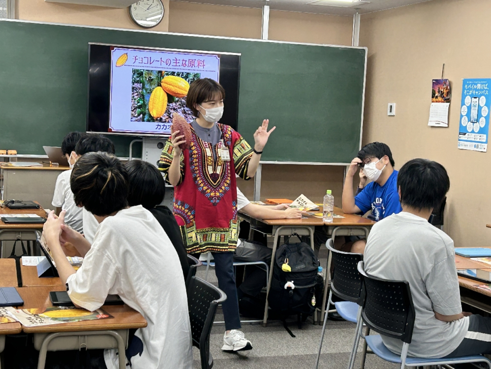 「カカオの実って見たことある?」「チョコレートは漢字でどう書くと思う?」などグループワークを通して