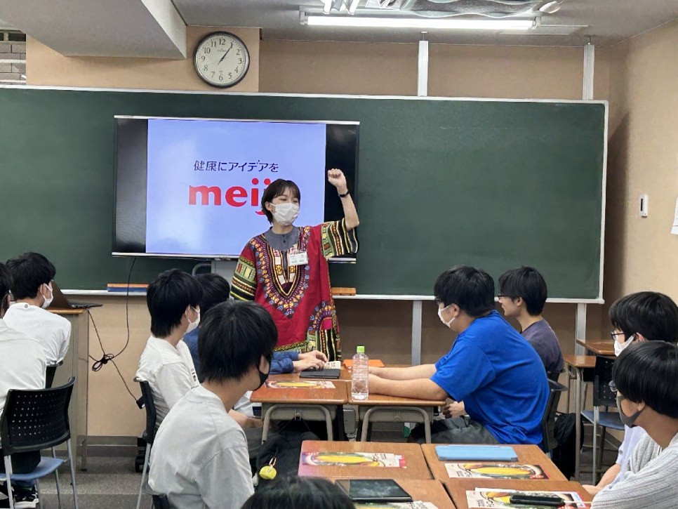 今日は株式会社明治の方を講師に迎え、話を聞きました。