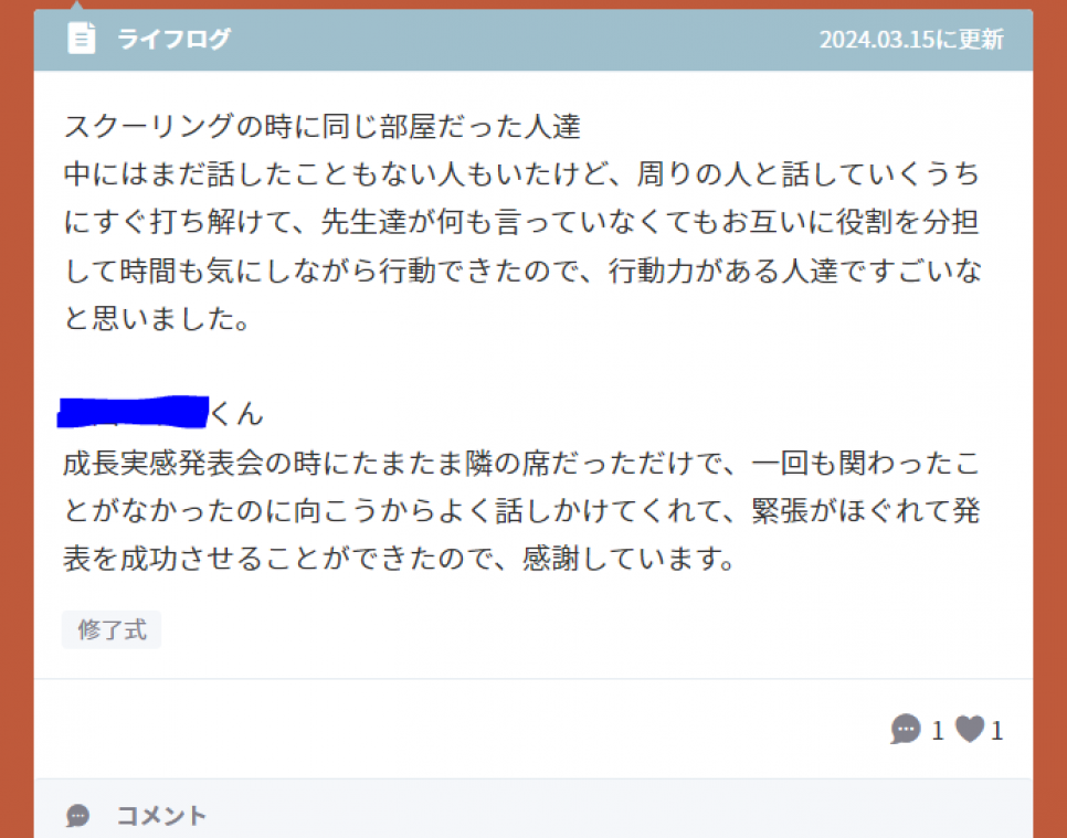 先週の金曜日、修了式をおこないました。