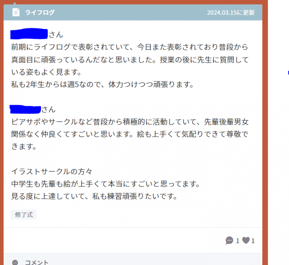 同じ学年の友だちや、先輩後輩、学校外の友だち、