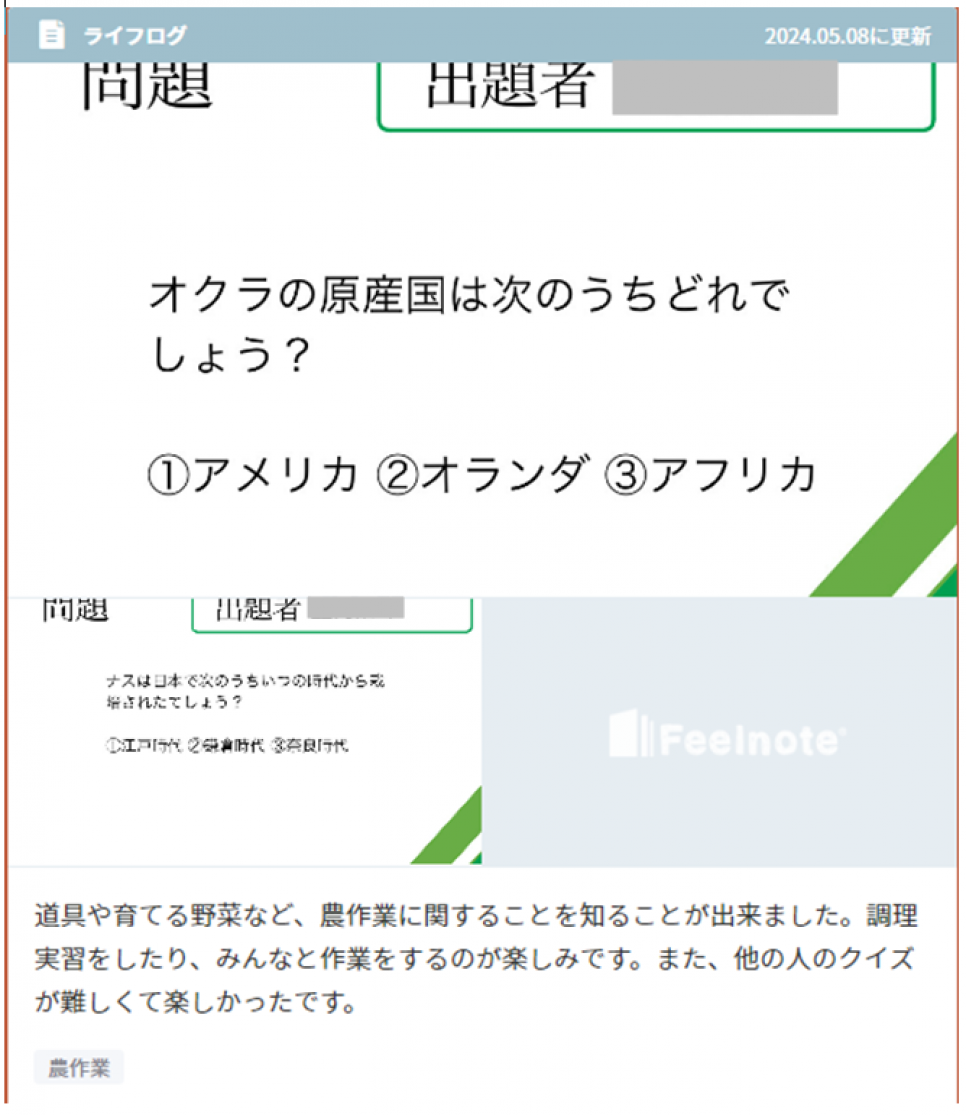 最後の時間には「野菜に関するクイズを作ろう」ということで、各々がクイズ作りに夢中になり、クイズの出し合いをしていました(*'▽')