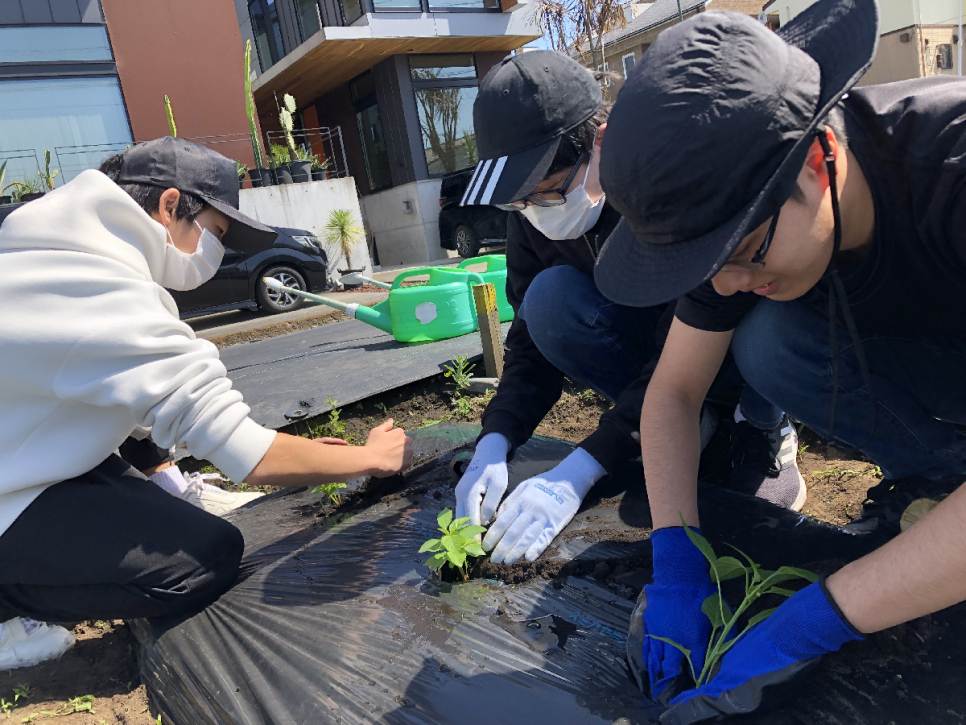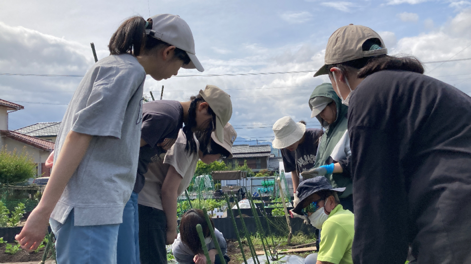 ■「小学生の時に、トマトを育てたことがありますが、畑の土で育てるのは、初めてでとても楽しかったです。他にも支柱を立てる作業などこんなに沢山の事をやる事で美味しい野菜ができるんだなと改めて実感しました。美味しい野菜を皆と協力し合い作っていきます!」