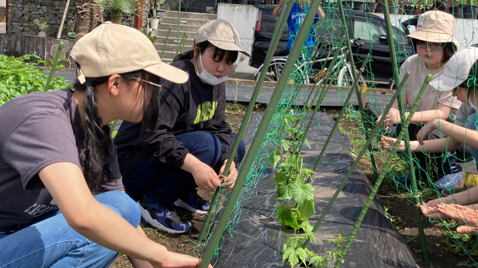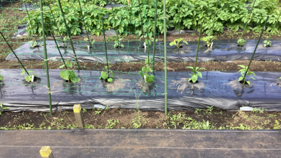 ■「農作業をやりました。今日は、網や支柱を紐で縛りました。これからの季節はとても暑くなるので、熱中症に気をつけながら農作業を頑張りたいです。野菜は苦手ですが、自分たちで育てた野菜を食べるのは楽しみです。」