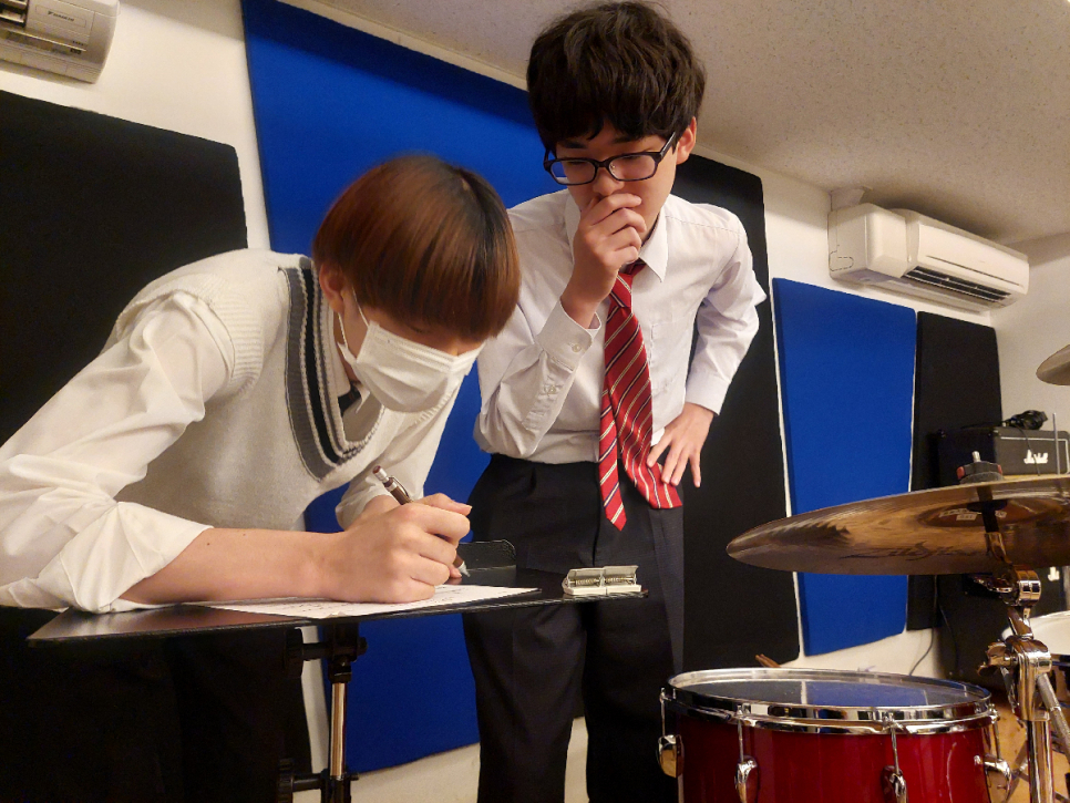 練習場所はキャンパスの近くにある、音楽スタジオ「音楽天国」さんを利用させていただき、1時間30分~2時間ほどの練習時間となります。
