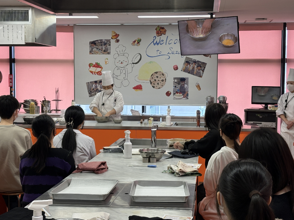 生地のまとめ方や成形の仕方など、細かな部分まで確認できる環境に生徒たちは驚くとともに、