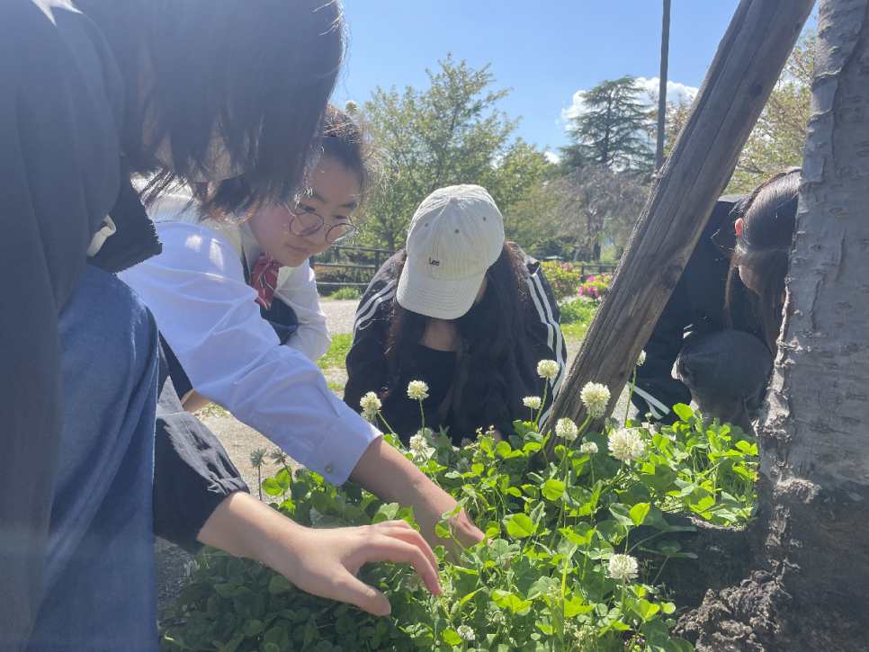 駿府城公園ではグループに分かれて四葉のクローバー探し!