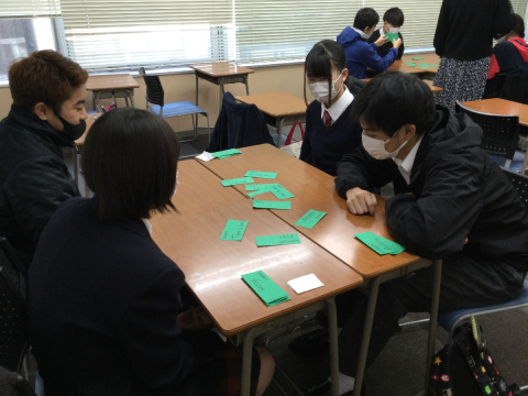 楽しく英語を学ぼう~英単語カルタ~本日の1年生の英語の授業では、英単語カルタをやりました! カルタは生徒たち自身の手作りです。 1年間で、英単語をどれだけ覚えたか楽しく学習することができましたね! -