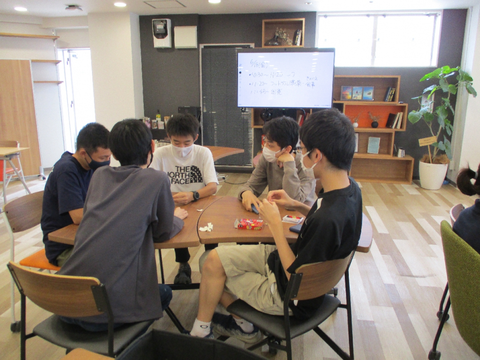 レクでは、4つのグループに分かれてUNOとワードウルフを実施しました。
