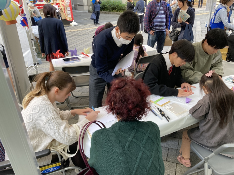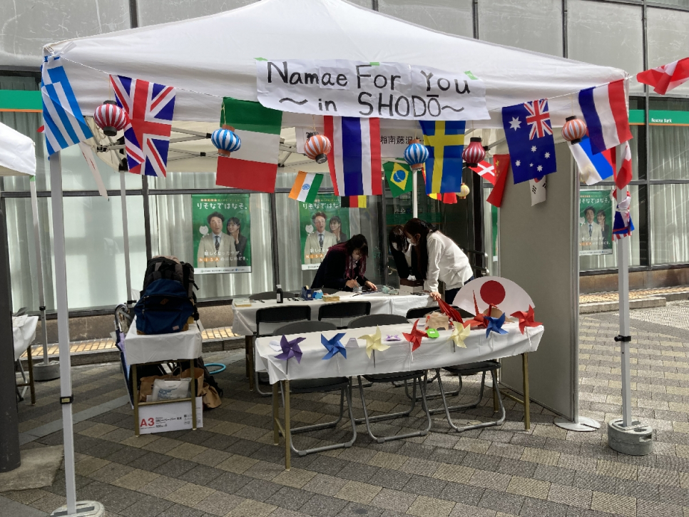 「海外の方のお名前を漢字に変換し、色紙やしおりに記入してプレゼント!」
