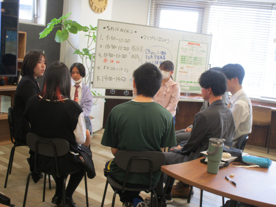 1時間目は自己理解を深めるワークを行いました。自分が夢中になれることは何か、将来はどういう人生にしていきたいかなど、自分の心の声に寄り添いながら考えることができました。