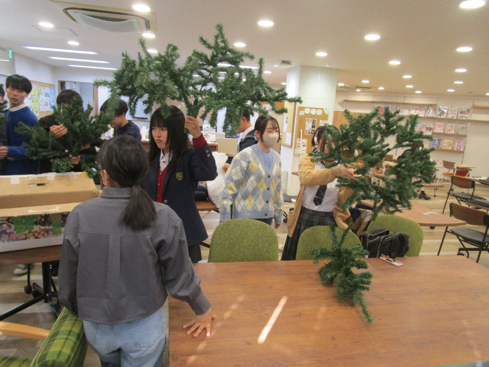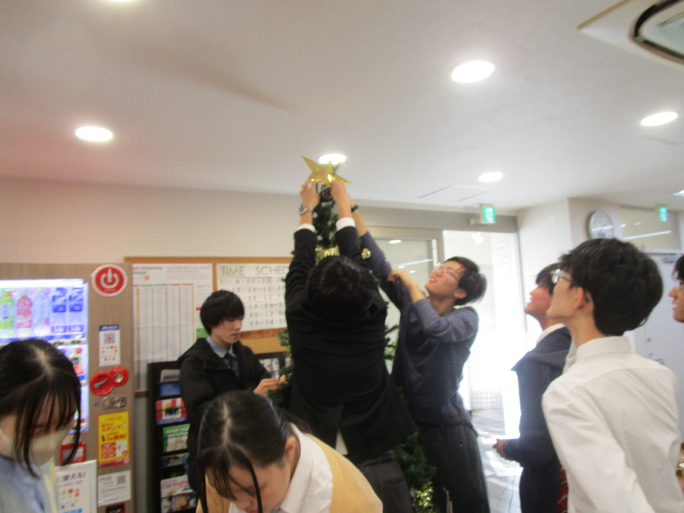ホームルームのあとでお手伝いしてくれる生徒さんと一緒に飾りつけ♪
