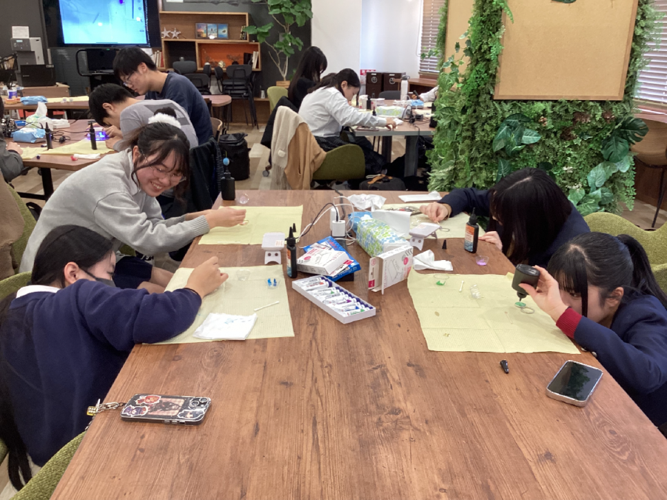 生徒たちも色作りからこだわって、シールやラメを使ったとっても素敵なスマホリングを作り上げました!