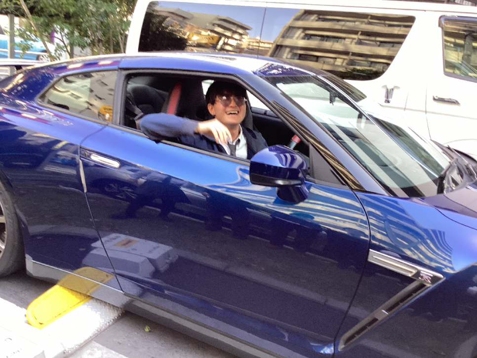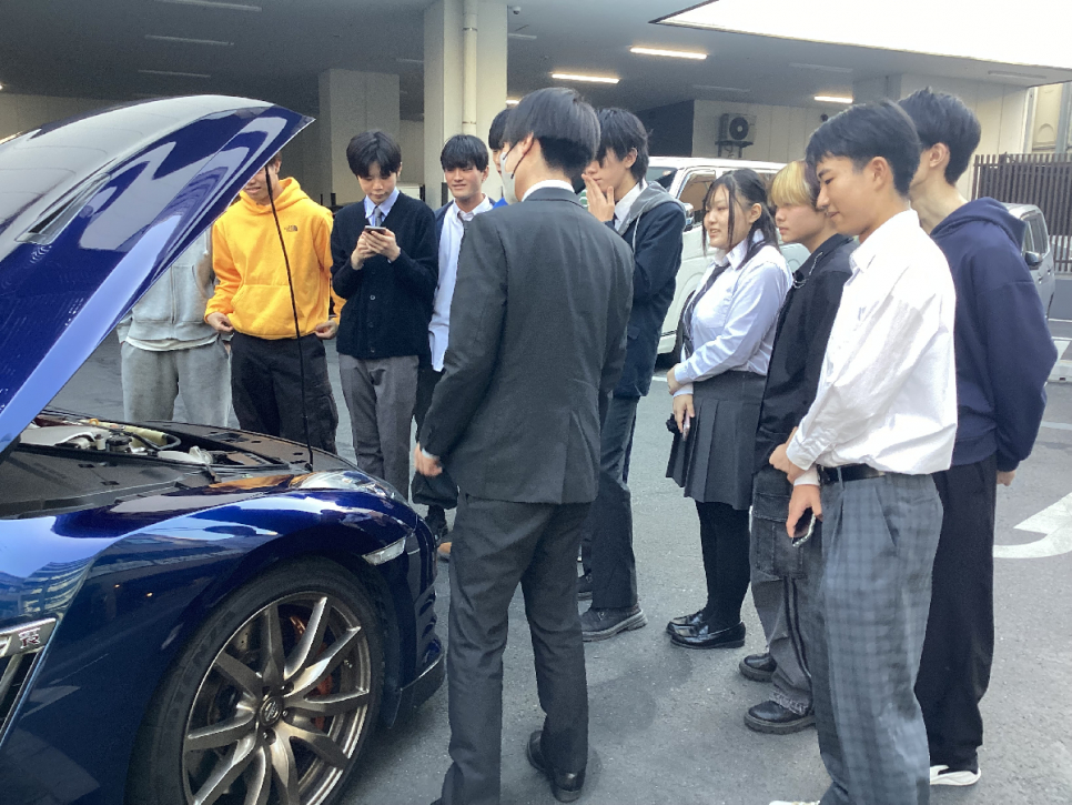 日産の高級スポーツカーであるGT-Rを藤沢キャンパスの近隣の駐車場までお持ちいただき