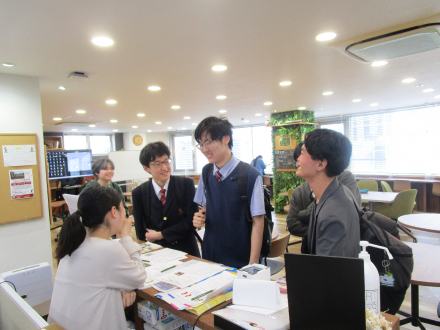 - 学校が終わったら寄り道して帰ることもあります。近くに市役所や図書館もあるので、友達と雑談しに行ったり、勉強しに行ったりすることもできます。