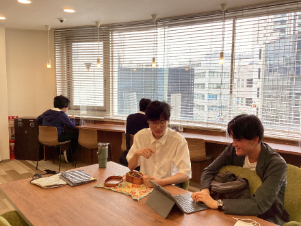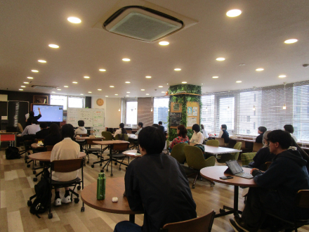 - 学校での学習はカフェのような空間で、とても集中できるので、僕は朝から登校しています。