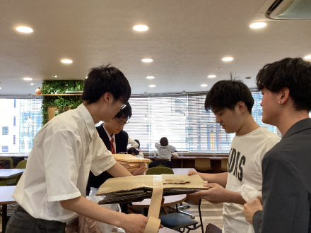 - 先輩や友達と一緒に楽しくお弁当を食べます。お話しながら皆で食べるご飯は美味しいです。