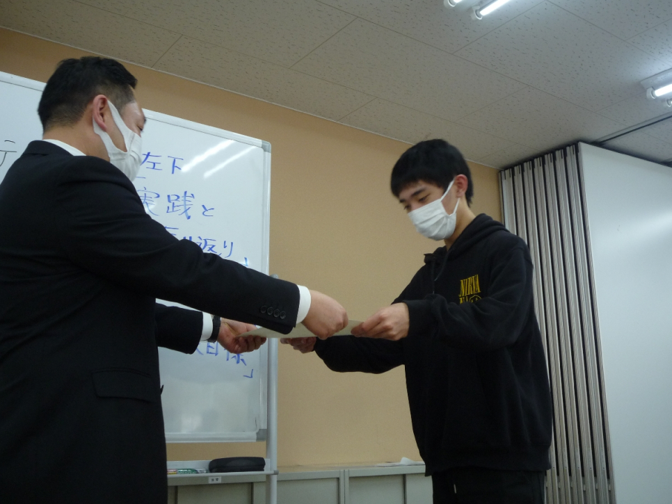 また、今回の修了式では、今年度成長の度合いが高かった生徒に表彰を行いました。