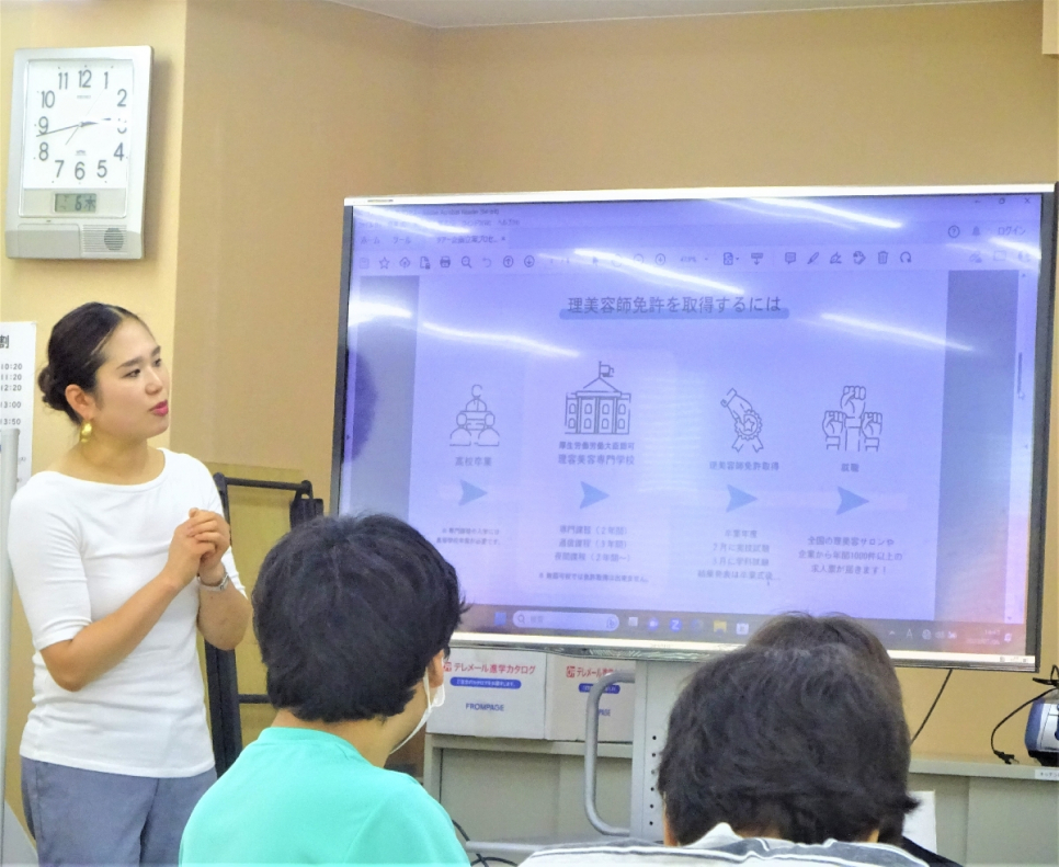 先日、アポロ美容理容専門学校の先生が来校し、