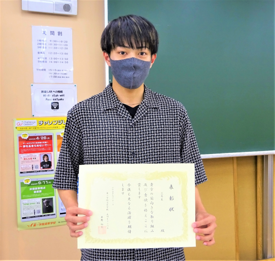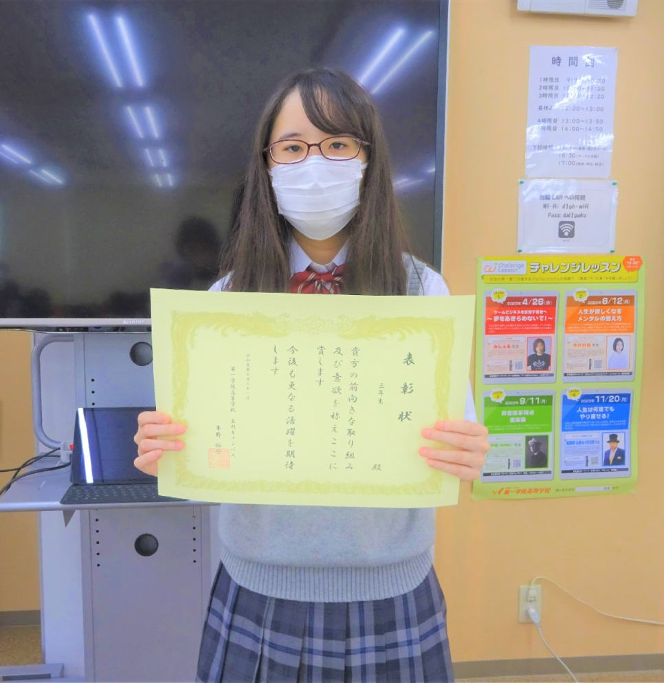 また、今学期頑張った・成長した生徒を表彰しました(^^)