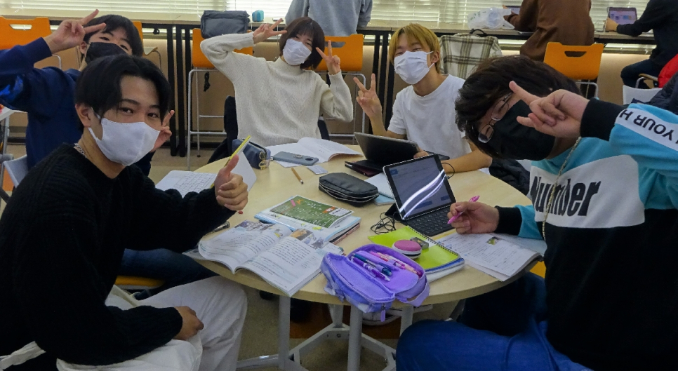 仲間と一緒に勉強~♪学年を越えて仲いいよ~