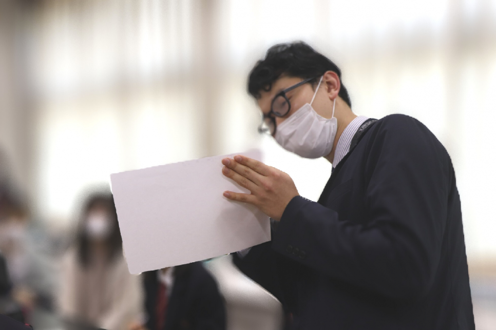 書道部・美術部の説明会では、今年度の活動計画の一部として、美術館や海への課外活動、学校内展覧会などを予定していること、また、動画制作やWEBデザインもできる環境であること、絵や書道だけではなく創作活動全般と美術系の進路を支援するとの話があり、顧問・部員が協力しながら勧誘していました。説明会の後は、絵しりとりや自己紹介のレクレーションを行いました。