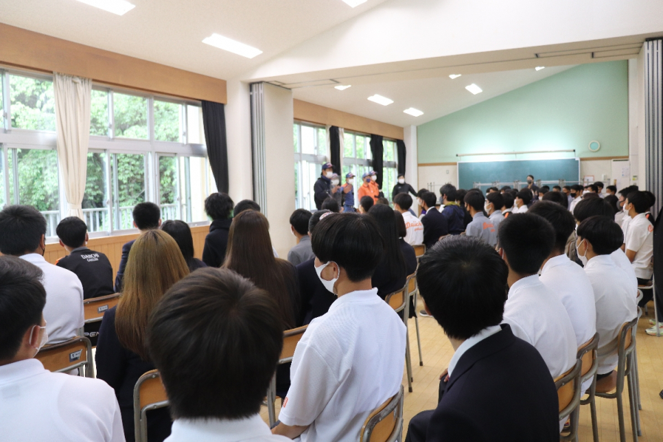 消防署の皆さんのご指導のもと、全生徒・職員で避難訓練を行いました!