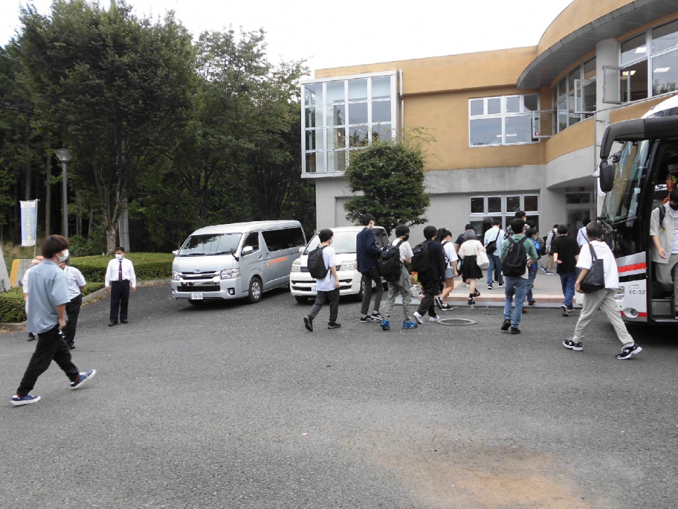 生徒たちは長距離移動にもかかわらず、疲れを感じさせず「こんにちは!」「よろしくお願いします!」と元気にバスから降車し、教室へ移動していきました。