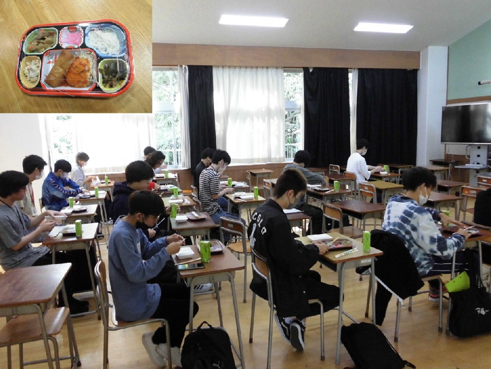 昼食の様子。感染対策として黙食のご協力をいただいています。