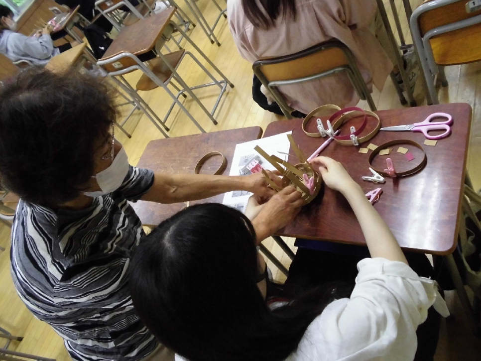 体験学習(エコクラフト):講師の方に、上手にできてるね!と褒められとても嬉しそうです。