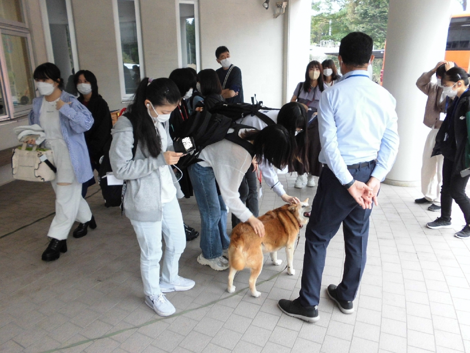 学校飼育犬のさくらの元に生徒が集まってきました。