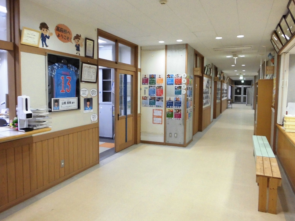校舎に入ると、職員室、事務室、そして各教室が並びます。