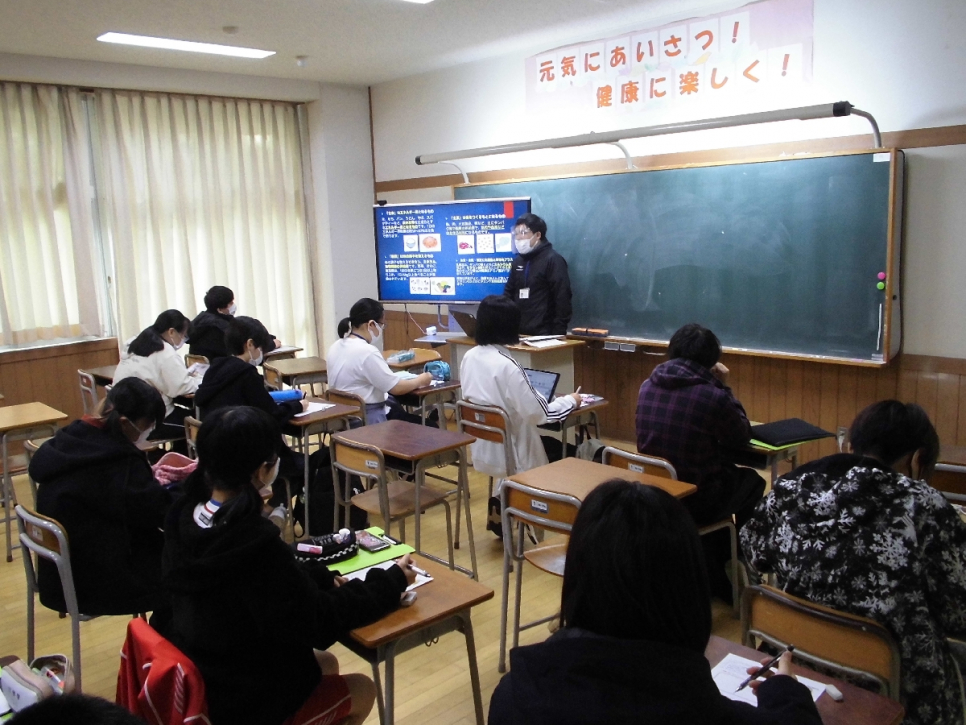 授業の様子:必要な摂取カロリーについて学びます。お弁当を作るとしたら?自分でお弁当の中身を考えます。栄養バランスはバッチリですか!?