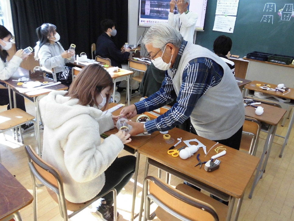 体験学習「「うずまきランプ作り」の様子。分からないところも講師の方が一緒に作業を進めてくれます。