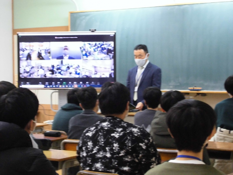 各教室をZoomで繋ぎ行った開校式の様子です。