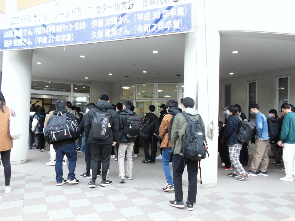高萩校へバスで到着した生徒たちは、緊張した様子で挨拶をし、開校式が行われる教室へと移動していきました。