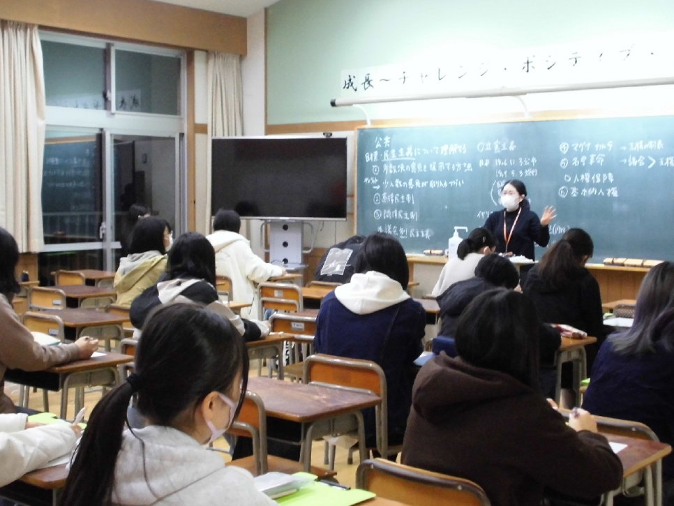 公民の授業の様子です。大きくなずきながらノートを取る姿を見ることができました。