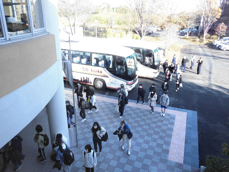 8時半過ぎ、宿舎からバスで移動し高萩校へ到着。今朝の登校の様子です。