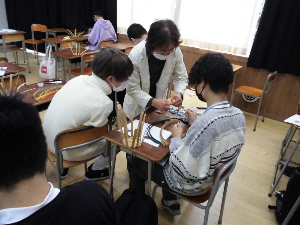 体験学習「エコクラフト」の様子です。講師の方に教えてもらいながら作業を進めています。