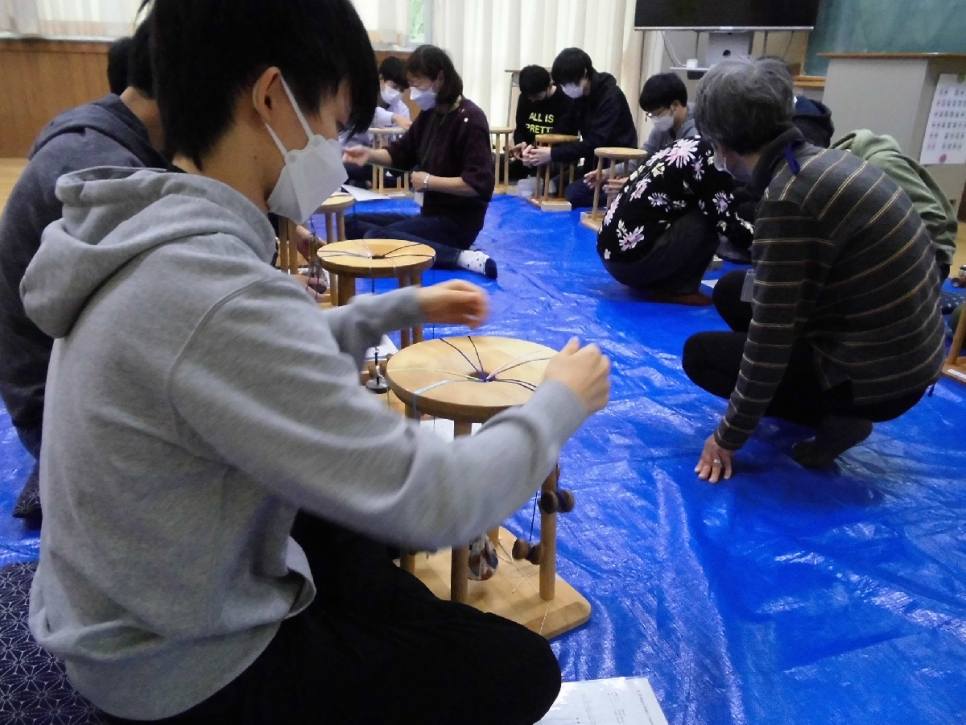 体験学習「組み紐」の様子です。真剣な表情で取り組んでいます!