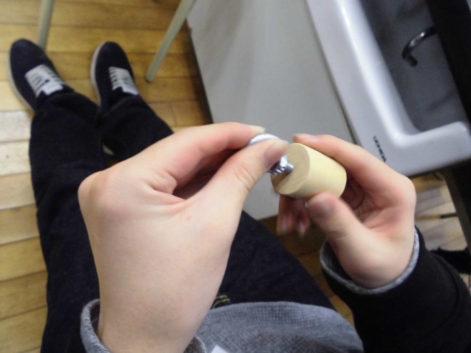 体験学習(箸・バードコール作り):バードコールもやすりをかけ形を整え、磨いていきます。