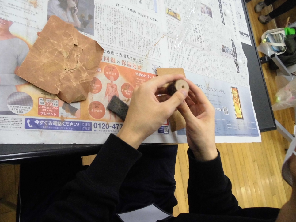『きれいに角が取れてきました!手が痛くなってきた~、暑い!上着を脱いでもいいですか?良し、続き頑張るぞ!』