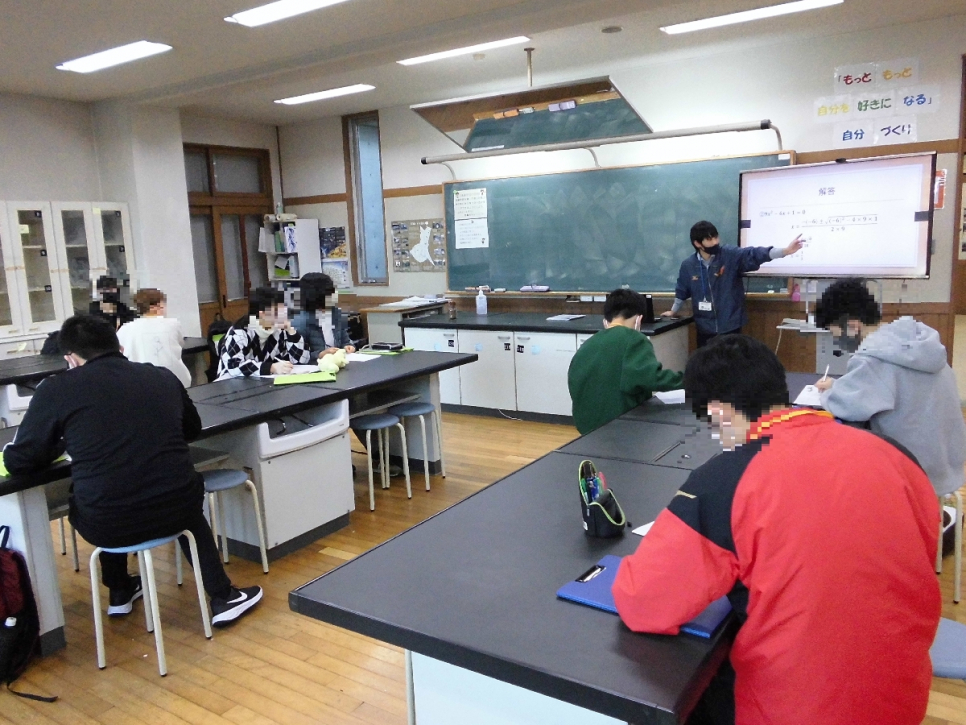 授業(数学Ⅱ):真剣な表情で授業を受け、生徒同士で解法を訊きあっていました。