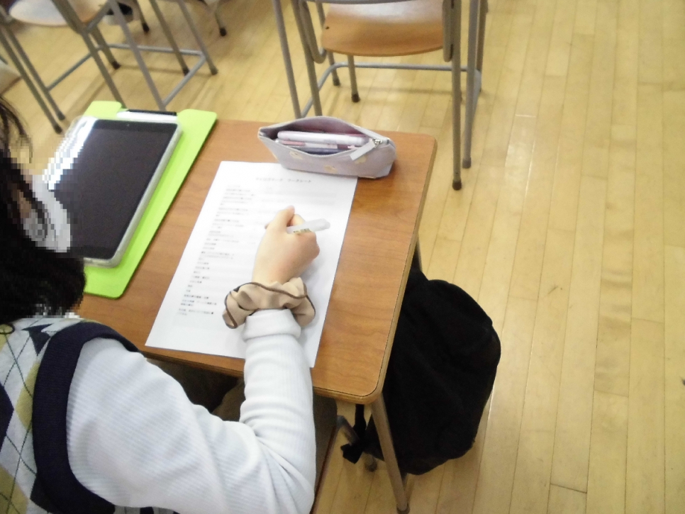 それを生徒同士見せ合い、『上手に出来たね!最初が緩んじゃったけど最後の方は綺麗に仕上がった!』