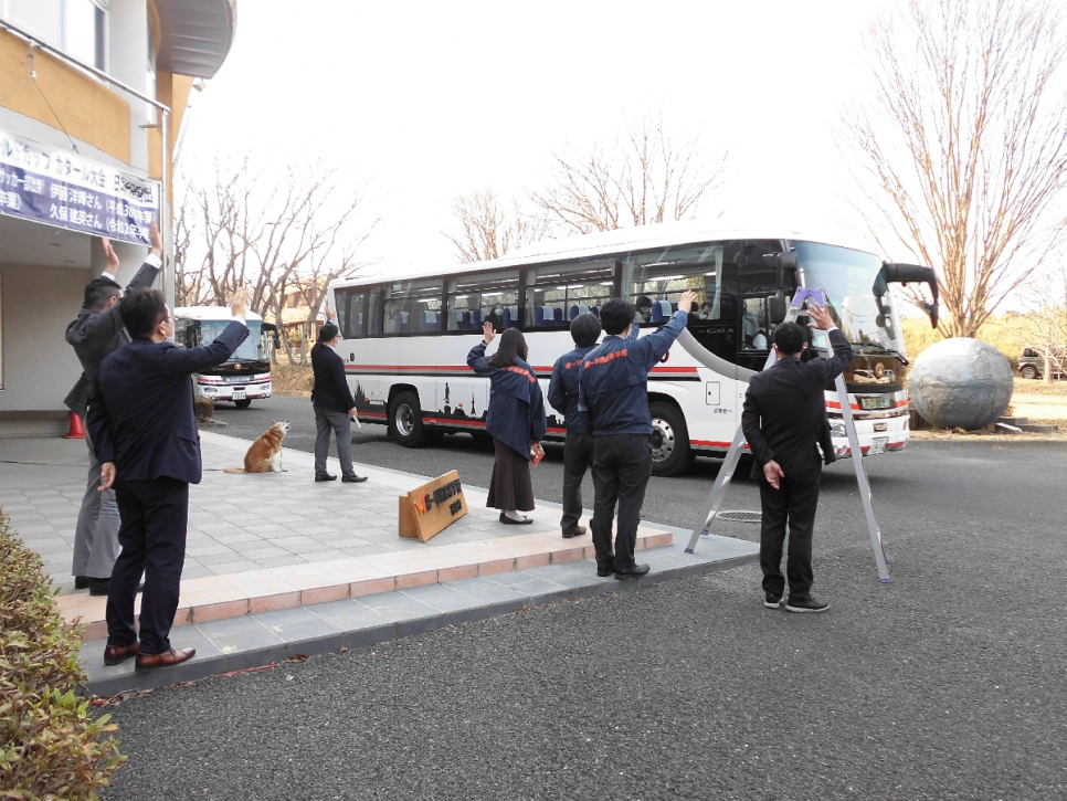 本校の職員でバスをお見送りします。みなさん、スクーリングお疲れさまでした!
